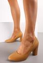 Brązowe Jednolite Czółenka na Słupku z Imitacji Skóry Legtia 4