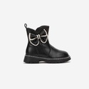 Czarne Sznurowane Botki na Płaskiej Podeszwie Zapinane na Rzep z Cyrkoniami Isilira